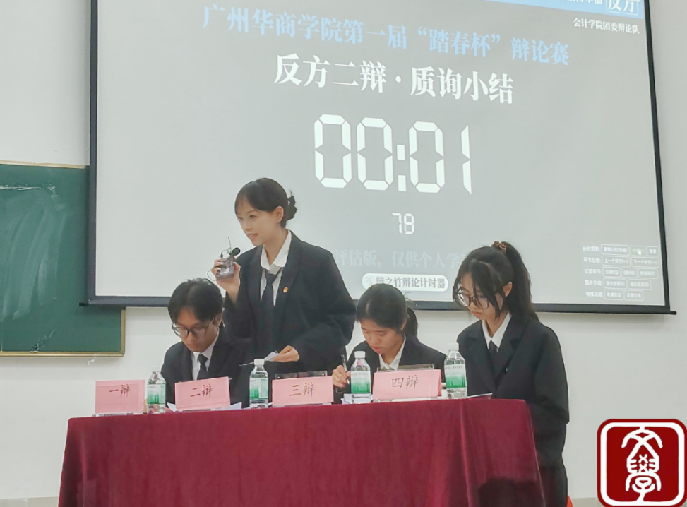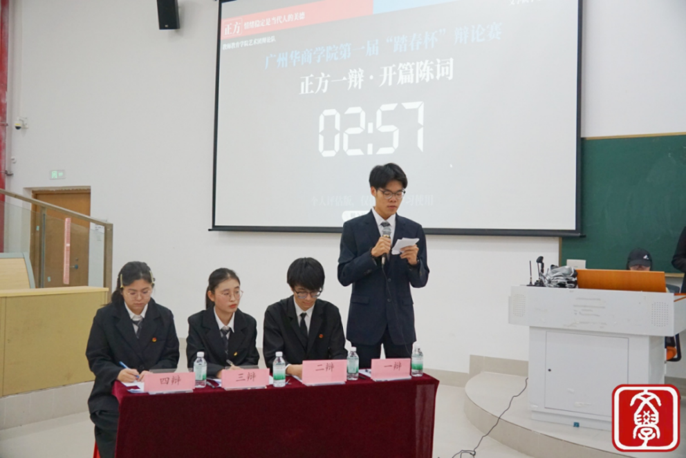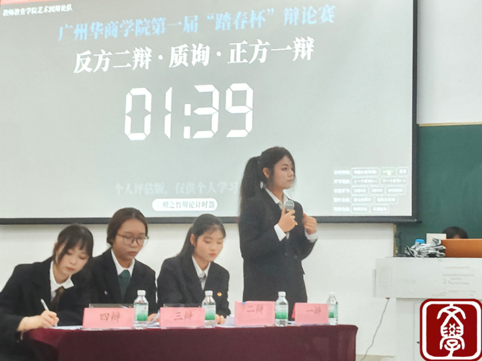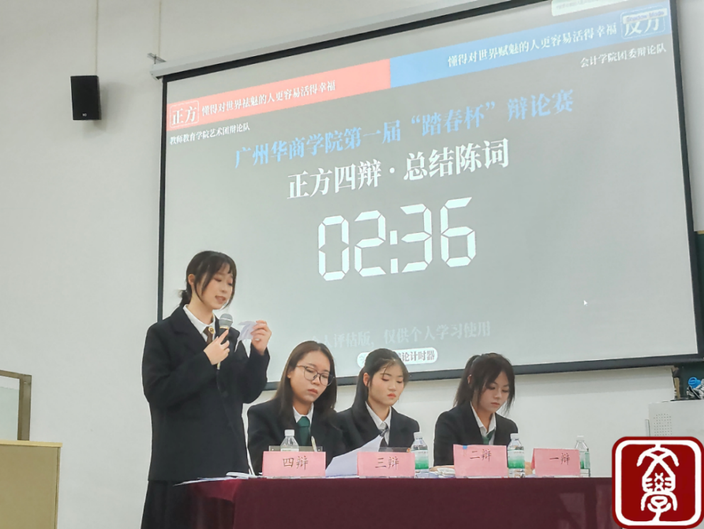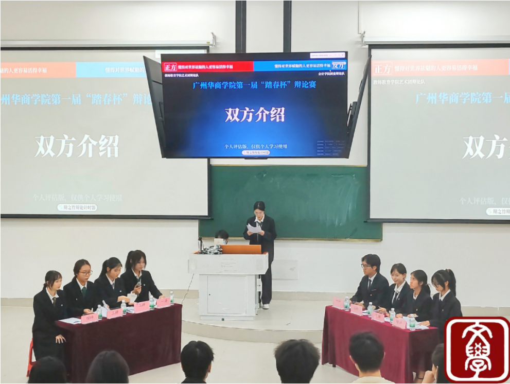 正方为教师教育学院艺术团辩论队,反方为会计学院团委辩论队。