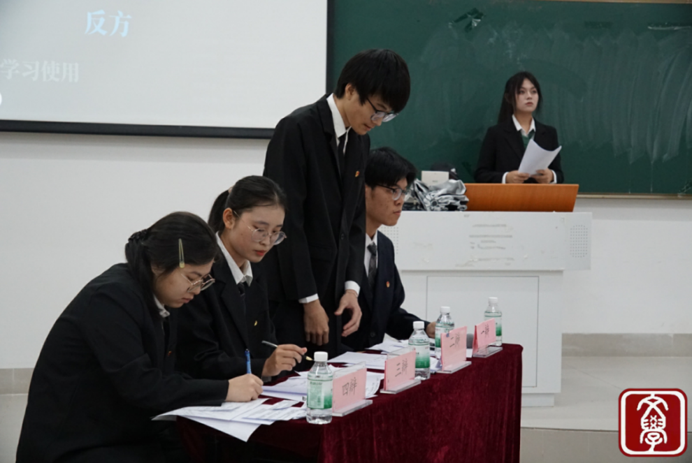 本场比赛的评委为bv伟德国际1946学生会辩论队负责人章宛月师姐、会计学院团委辩论队负责人李宛蓉师姐、教师教育学院艺术团辩论队负责人罗刘熔师姐。